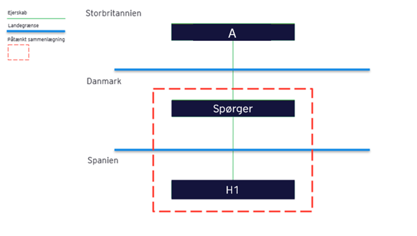 Hensigten med at gennemføre den påtænkte grænseoverskridende omvendte lodrette fusion er, at der ikke længere er et behov for at bevare Spørger som en del af strukturen. A ønsker fremover at drive virksomhed i en mere simpel og strømlinet struktur, der samtidigt vil gøre det lettere for A at sælge fast ejendom beliggende i by 1, Spanien fra H1. Et direkte ejerskab imellem A og H1 er derfor efterstræbelsesværdigt. Strømlining af strukturen vil ligeledes lette den administrative byrde og medføre en omkostningsbesparelse, da omkostningerne til bl.a. revision mv. formindskes. Herudover reduceres den administrative byrde ved at have de forskellige selskaber i koncernen i forskellige jurisdiktioner.