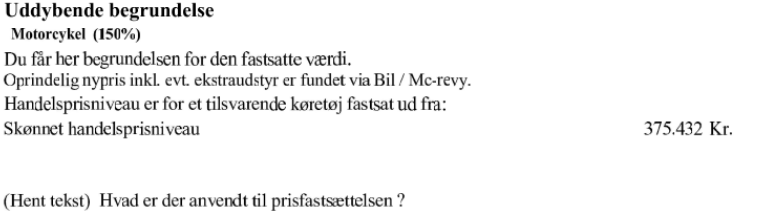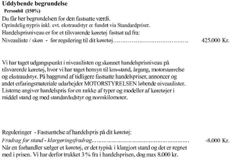 Indsigelser vedrørende Motorstyrelsens grundlag for værdifastsættelse