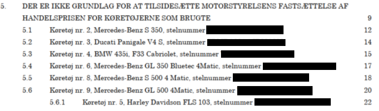 Af Motorstyrelsens afgørelse af 25. november 2020 fremgår vedrørende køretøj 5 (afgørelsens pkt. 8) endvidere bl.a.: