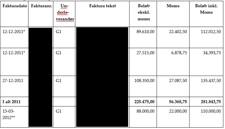 At skattemyndighederne har opkrævet momsen på fakturaerne hos G1-virksomhed, der har udstedt fakturaen, er således ikke udtryk for, at myndighederne i den sammenhæng har lagt til grund, at fakturaerne dækker over faktisk leverede ydelser og altså ikke er fiktive - tværtimod.