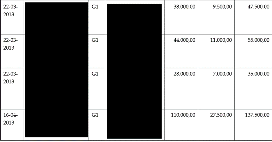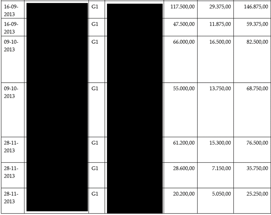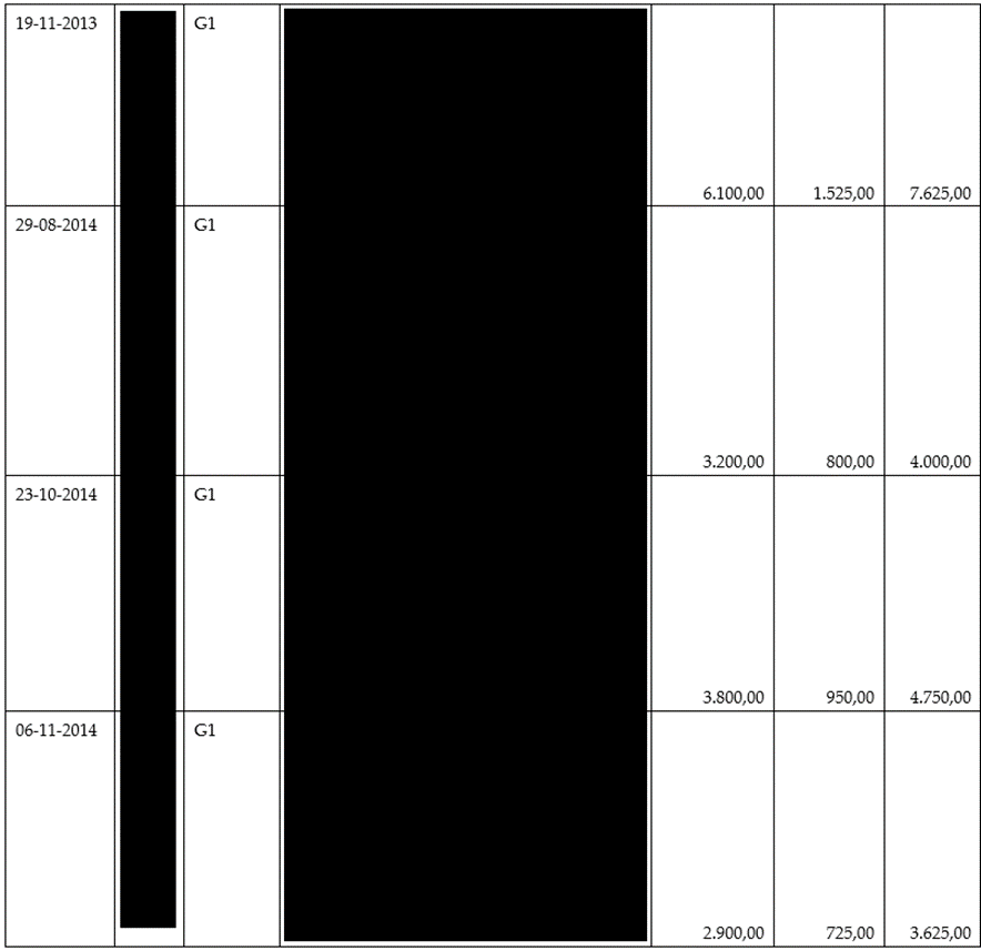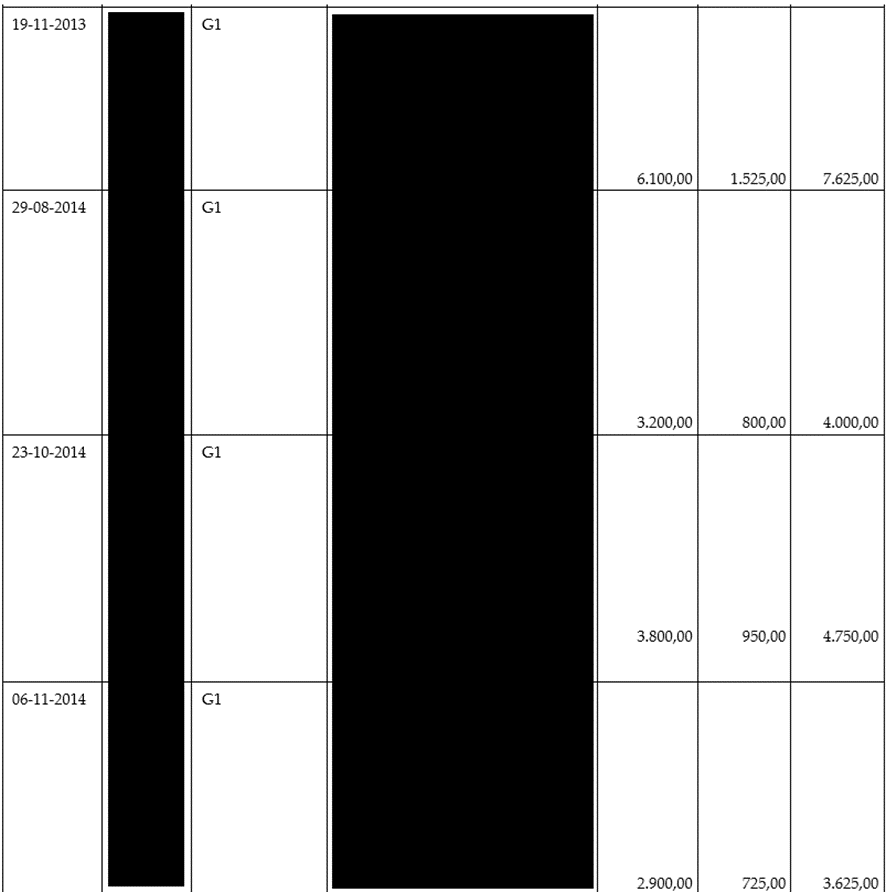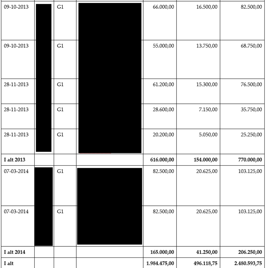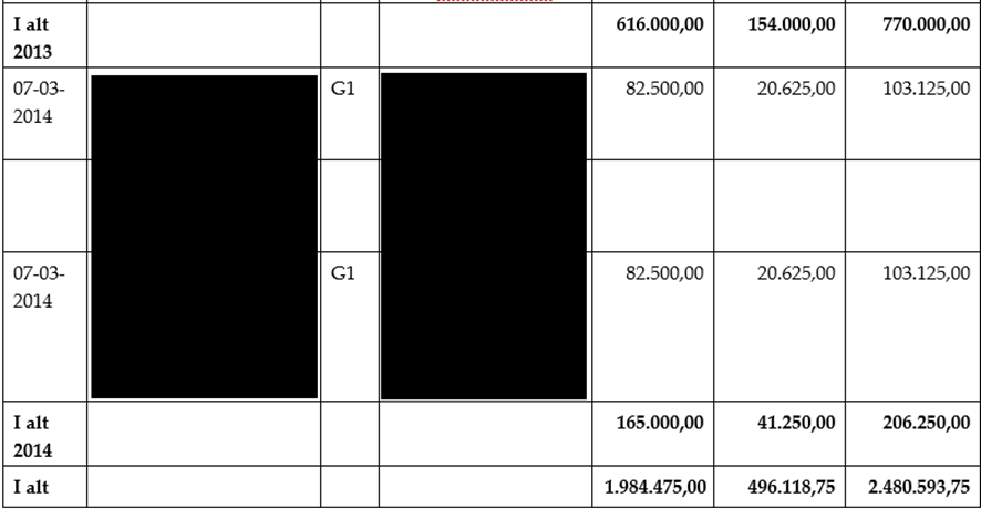 Flere af fakturaerne er udstedt samme dato og udgør sammenlagt pr. dag i alt 137.500 kr. inkl. moms.