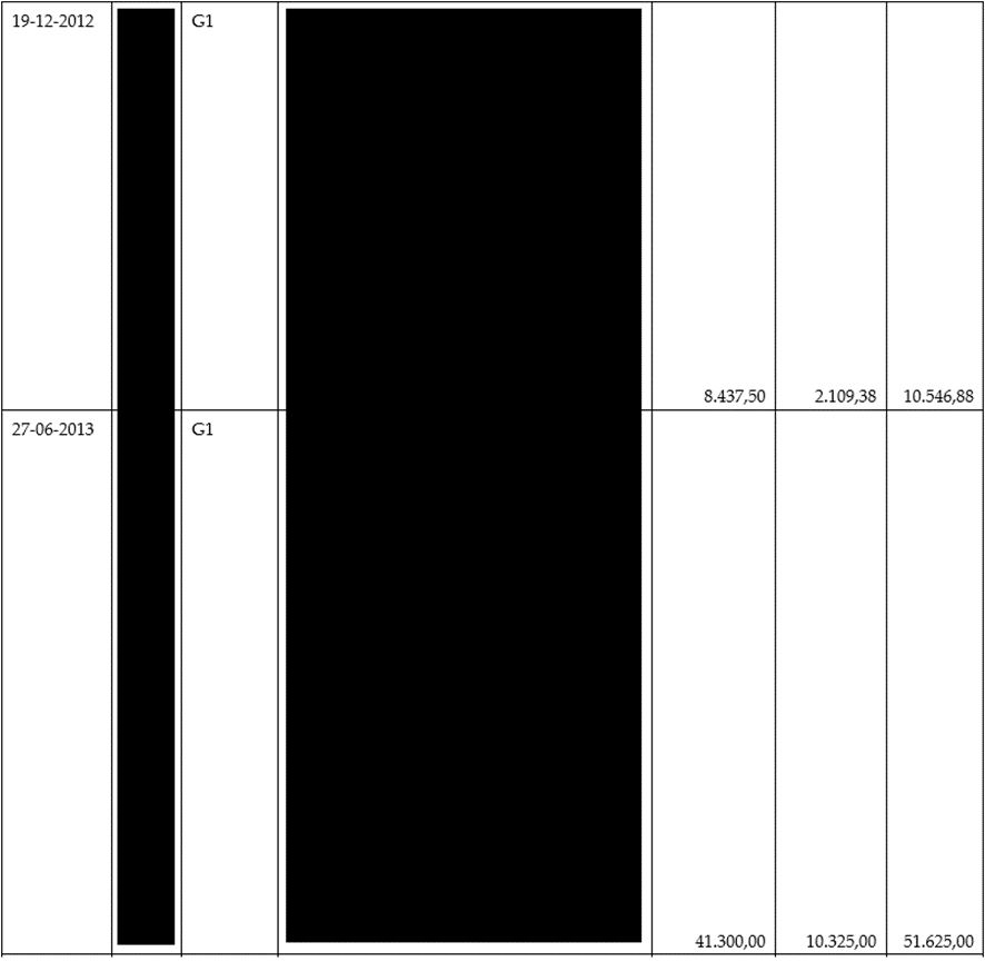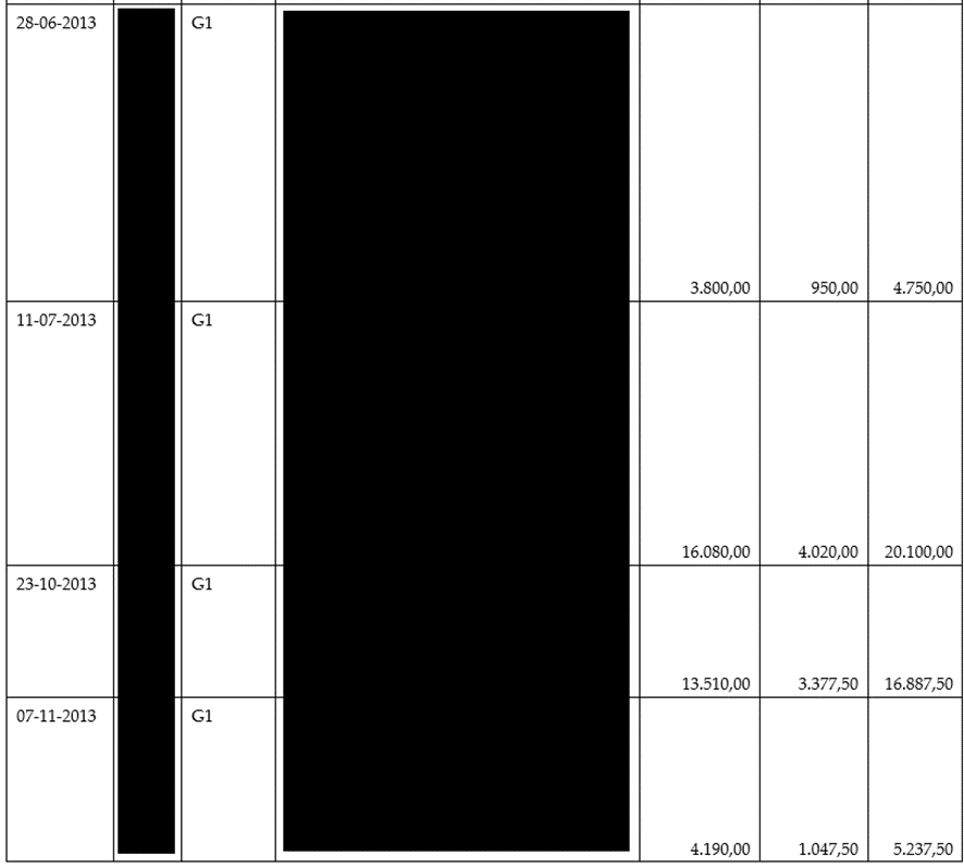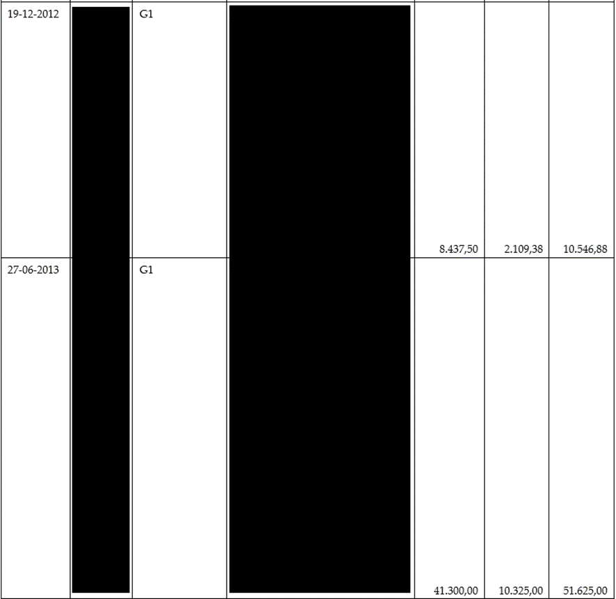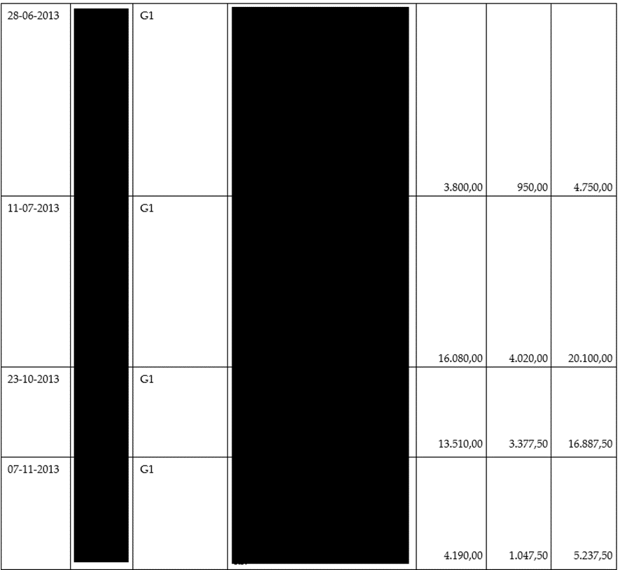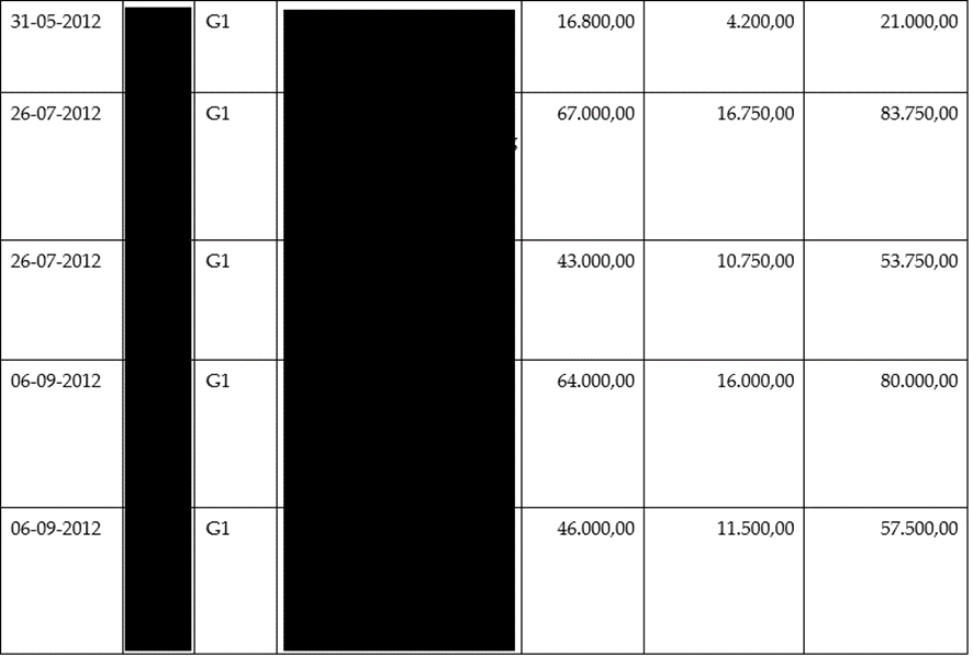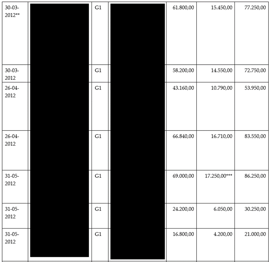 Flere af fakturaerne er udstedt samme dato og udgør sammenlagt pr. dag i alt 137.500 kr. inkl. moms.