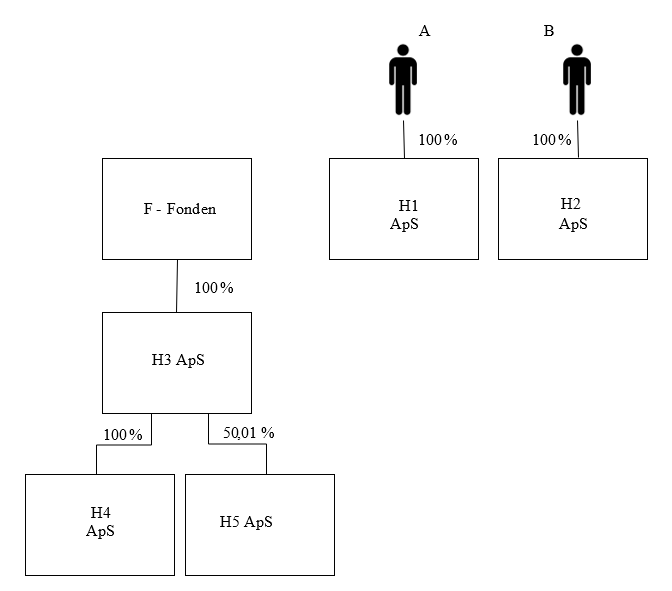 H1 Holding ApS, og H2 Holding ApS ejer samlet 100% af H3 Holding ApS, H1 Holding ApS og H2 Holding ApS ejer hver 50 % af anparterne og stemmerne i H3 Holding ApS.