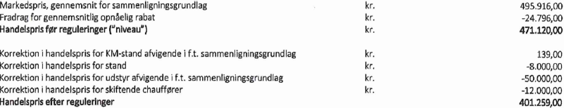 "Handelsprisniveau er for et tilsvarende køretøj fastsat ud fra: