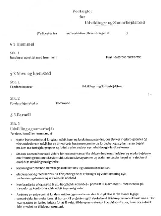 Udviklings- og samarbejdsfonden er oprettet i henhold til § 15 Funktionæroverenskomsten for XXX.