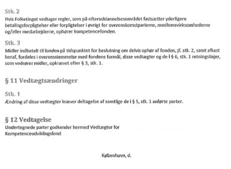 Fonden påtænker nu at opdatere vedtægterne for at præcisere og tilsikre, at den i overenskomsten afsatte pulje vedrørende kompetenceudvikling som tiltænkt også formelt udmønter sig i en forening omfattet af selskabsskattelovens § 1, stk. 1, nr. 6. Opdateringen af vedtægterne påtænkes at ske i henhold til vedlagte vedtægtsparadigme, se nedenfor.
