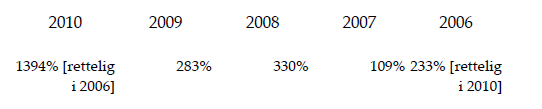 Dernæst må der lægges vægt på bl.a., at G1 for 2006 modtog et mangementfee med udgangspunkt i H2 ApS' overskud for hele 2006, uanset at det må lægges til grund, at G1 først blev stiftet den 8. marts 2006 og fik tilladelse til at drive virksomhed fra den 1. april 2006. Herudover må det - uanset at dette er erkendt af H2 ApS over for skattemyndighederne - tages i betragtning, at management fee'et for de kontrollerede transaktioner mellem H2 ApS og G1 var fastsat forkert, idet G1 for perioden 2006-2010 modtog i alt ca. 24,7 mio. kr., som G1 efter Service Agreement og allongen hertil ikke var berettiget til, fordi der i strid med de nævnte aftaler var medtaget igangværende arbejder. Det må i forlængelse heraf også tages i betragtning, at G1s vægtede gennemsnit for såkaldt Return on Total Cost for indkomstårene 2006-2010 lå på 258 pct.