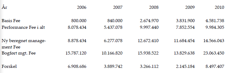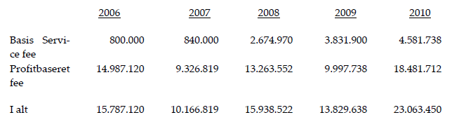 I forbindelse med opgørelsen af den skattepligtige indkomst for indkomstårene 2006-2010 udgiftsførte H2 ApS i alt 78.785.549 kr. vedrørende køb af serviceydelser fra G1. Udgifterne angik betaling af såkaldt management fee, der var opdelt i et basis fee (i alt 12.728.608 kr. i de omhandlede år) og et profitbaseretfee (i alt 66.056.941 kr. i de omhandlede år), og som havde sit grundlag i en Service Agreement fra 2007 og en allonge hertil fra 2008, der begge var indgået mellem H2 ApS og G1.