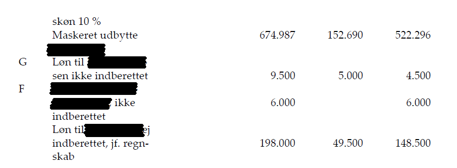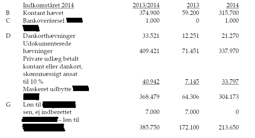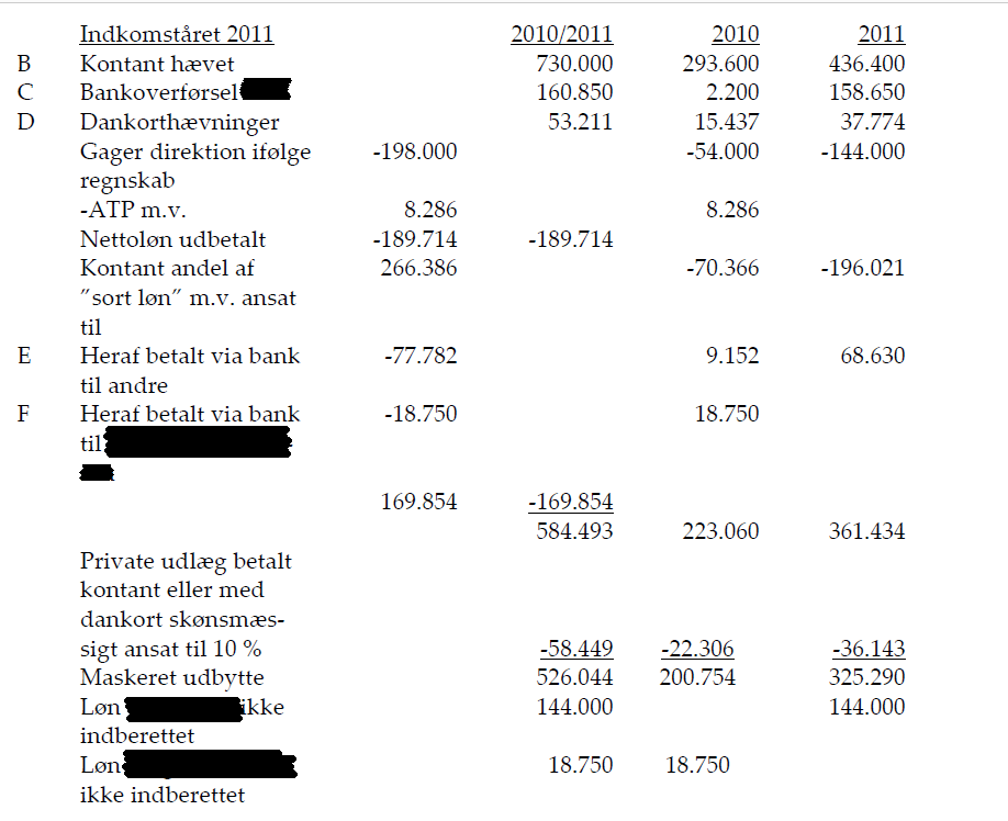 Punkt 2) Ikke selvangivet lønindkomst og maskeret udbytte