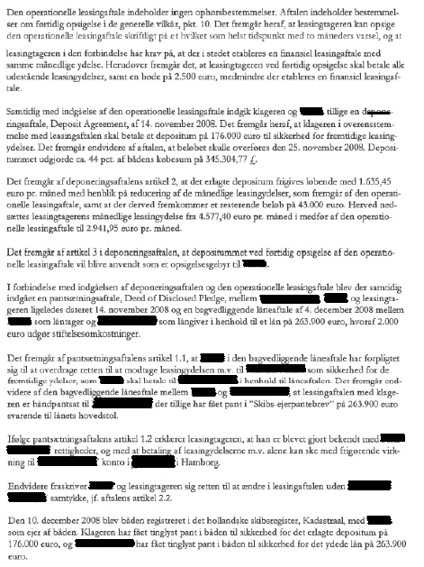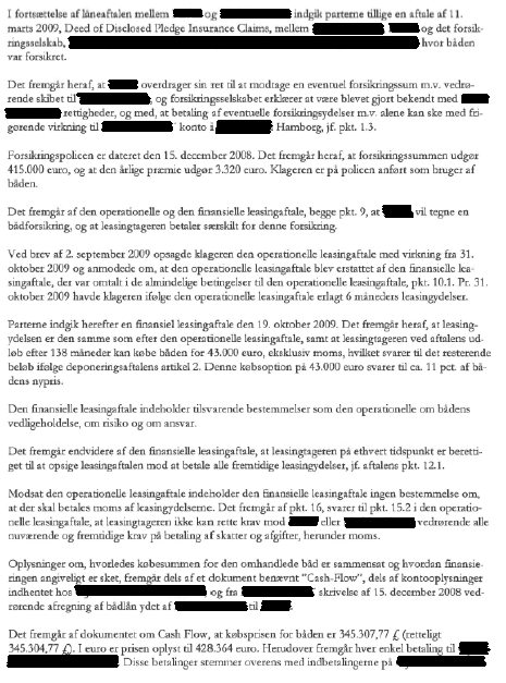 kun en brugsret til båden. G2-virksomhed samarbejdede med notaren i Holland, hvor ejerforholdene til skibe skulle registreres. Leasingarrangementet var forbundet