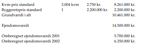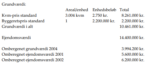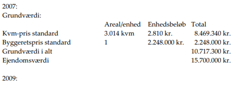 For så vidt angår vurderingsåret for 2009, indebærer anvendelse af den lave sats for de kvadratmeter, der overstiger 1.400 kvadratmeter en nedsættelse af grundværdien til 5.313.792 kr. og udgør dermed en ændring i grundværdien på 25,5 pct.