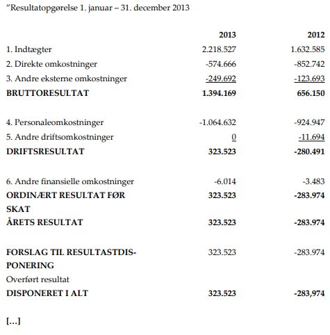 Selskabet har i perioden 1. juni 2013 til 30. september 2014 udloddet 945.000 kr. i midler til G1.