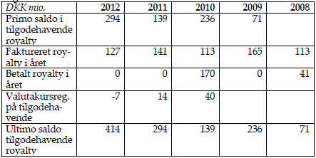Royaltytilgodehavende samt -betalinger udgør i perioden 2008-2011 følgende: