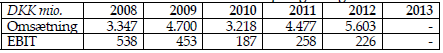 De økonomiske resultater for G2-virksomhed udgør følgende: