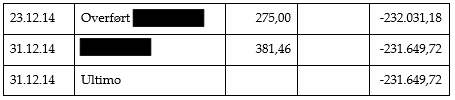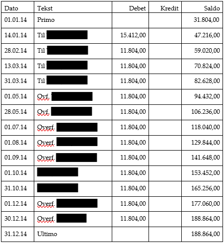 Der er bogført følgende posteringer i perioden fra den 1. januar 2014 til den 31. december 2014: