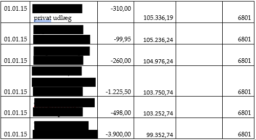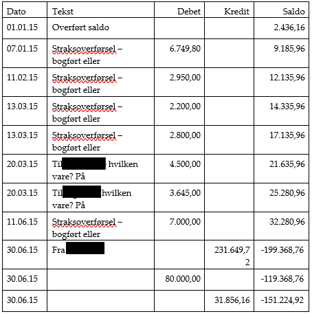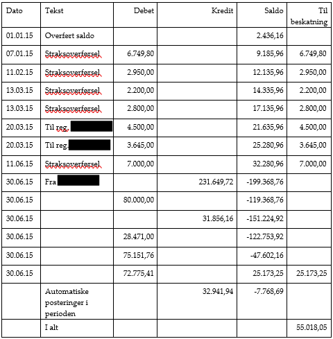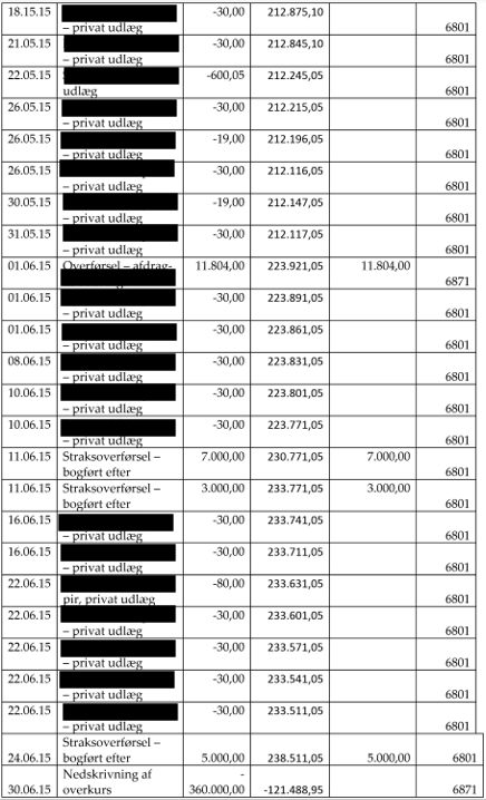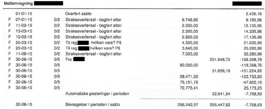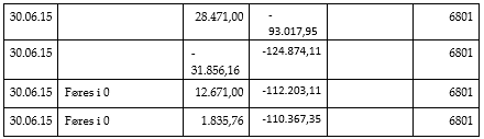 - konto 6801 Mellemregning A i perioden 01.01.15-30.06.15