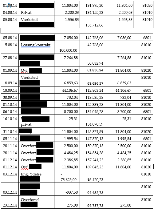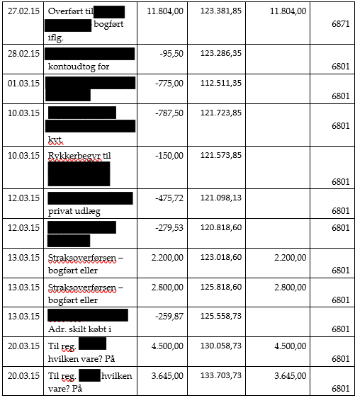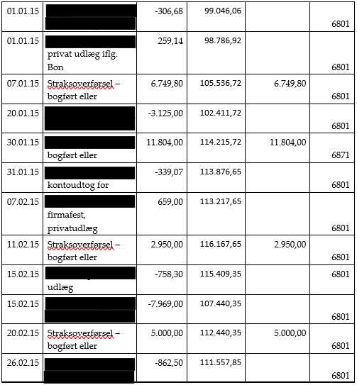 Hovedaktionæren skulle derudover beskattes af en række hævninger i selskabet, som var bogført på mellemregningskontoen, jf. ligningslovens § 16 E.
