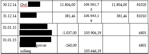 Følgende posteringer er bogført på konto 81010 G2-ApS i perioden 23.09.13-31.12.14, men ikke medtaget i vores opgørelse af din mellemregning: