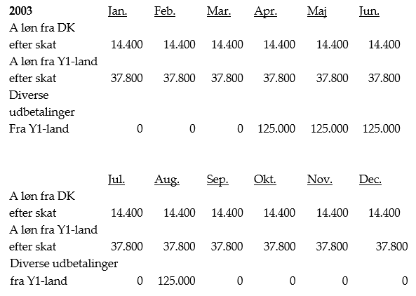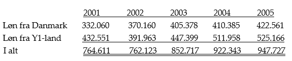 Lønindkomsten fra Danmark er fra (red. universitet 1 fjernet). Indkomsten fra Y1-land er fra (red. forening fjernet).