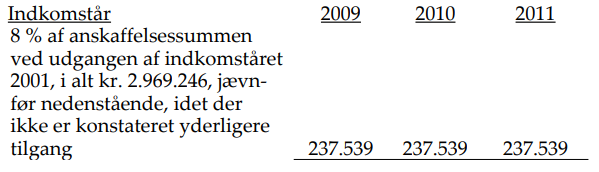 2011 Personlig indkomst Værdi af fri bolig Værdi af fri benyttelse af aktiver | 1.049.411kr. 237.539 kr. | 0 kr. 0 kr. | 1.049.411 kr. 237.539 kr. |