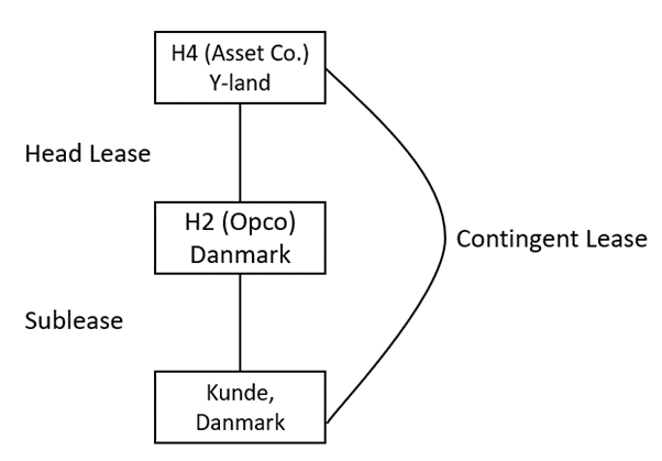 Leasingaftalerne - der indgås en aftale for hvert enkelt aktiv - omtales som head lease ("Head Lease") mellem Asset Co. og Opco og som sublease ("Sublease") mellem Opco og de danske kunder, mere herom følger nedenfor. Head Lease og Sublease indgås som back-to-back-aftaler, hvilket betyder, at leasingydelsen på Sublease svarer til leasingydelsen på Head Lease.