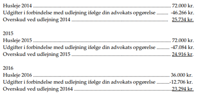 · Overskud ved udlejning af ejendommen Y2-adresse i Y3-by, skal medregnes i den skattepligtige indkomst, jf. statsskattelovens § 4 23.294 kr.