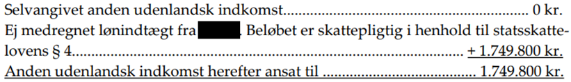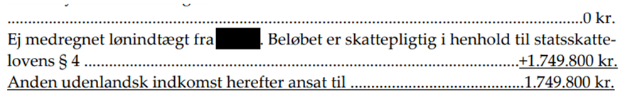 · Ej medregnet lønindtægt fra Y1-land. Beløbet er skattepligtigt i henhold til statsskattelovens § 4 + 1.440.000 kr.