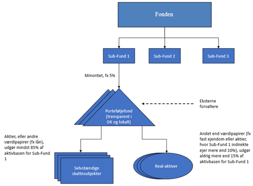 For Sub-Fondene gælder tilsvarende, at de hver især udgør selvstændige økonomiske enheder, og midlerne i de pågældende Sub-Fonde kan alene anvendes til fordel for investorerne i den pågældende Sub-Fond, jf. ovenstående beskrivelse af de organisatoriske forhold. Den skattemæssige vurdering af Sub-Fondene bør således foretages for den enkelte Sub-Fond.