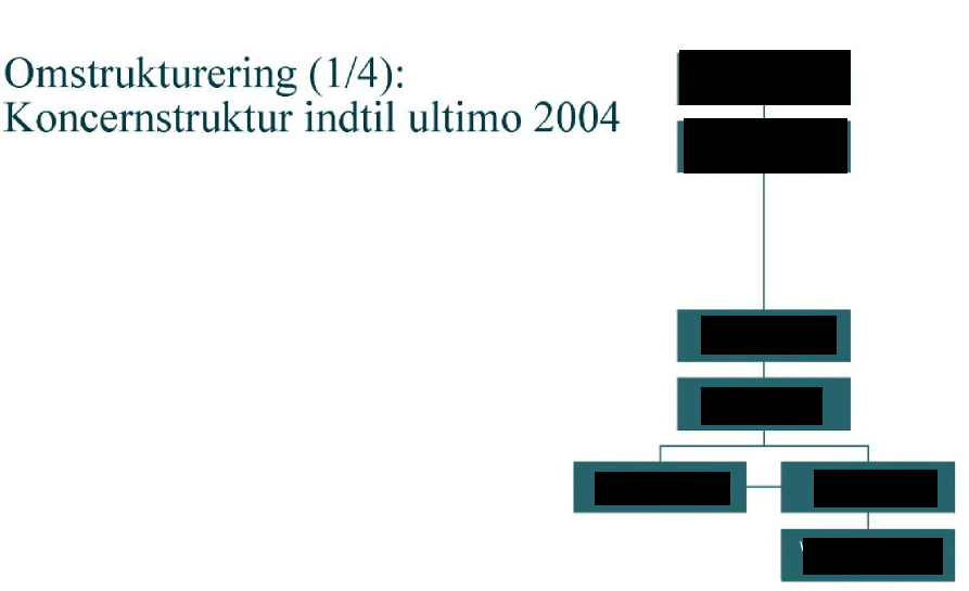"Background to (red.fjernet.koncern) (red.fjernet.arbejdspapir) During 2004, (red.fjernet.koncern) decided to review its current European group structure with a view to ensuring that the structure allowed flexibility in connection with a possible future sale or transfer of capital between the European subsidiaries. Furthermore, it was recognised that (red.fjernet.koncern) would benefit from refinancing the European group in recognition of the positive impact on the credit status and other day to day trading arrangements of the operating companies that formal recognition of the subsidiaries market value would be expected to have.