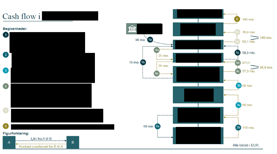 I kraft af arrangementet blev der skabt et stort koncerninternt lån, med den følge at H1 kunne nedbringe sin skattepligtige indkomst i Danmark med fradragsberettigede renteudgifter, uden at de modstående renteindtægter blev beskattet inden for koncernen. De koncerninterne lån på i alt 900 mio. EUR blev ikke etableret, med det formål eller den følge at den danske del af (red.fjernet.koncern) tilførtes en dertil svarende likviditet til brug for investeringer eller indfrielse af eksterne kreditfaciliteter, og forretningsmæssigt havde det i givet fald været langt simplere, at G5-virksomhed havde ydet et lån direkte til den danske del af koncernen. Arrangementet var uden nogen plausibel forretningsmæssig begrundelse.