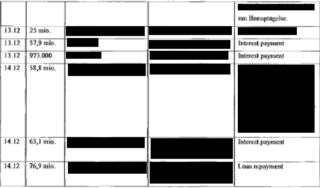 Eksisterende lån fra G5-virksomhed til H1 med hovedstol på 69.887.747 Euro plus tilskrevne renter 33.085.752 Euro - i alt 102.973.499 Euro blev også overført til G1-virksomhed på denne dato. Fordringen omtales i arbejdspapirerne vedrørende omstruktureringen som "(red.fjernet.fordring)".
