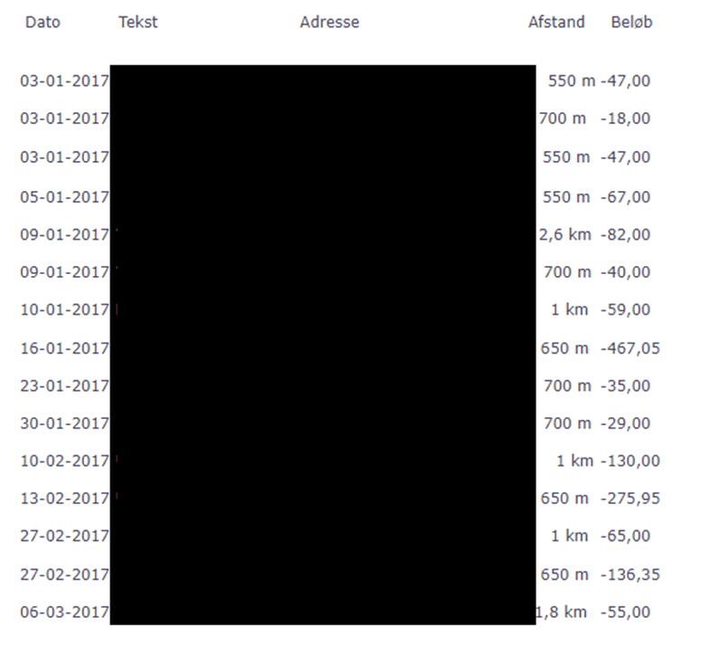 Ved gennemgang af klagerens bankkonti, blev det konstateret, at han har haft følgende betalinger til f.eks. F3-mobiltjeneste, F2-forsikring og F4-energiselskab: