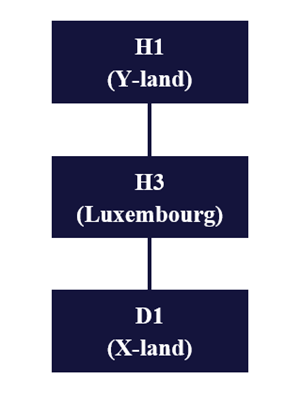 Skatterådet fandt ved den påklagede afgørelse (SKM2019.413.SR), at ligningslovens § 3 skulle anvendes på arrangementet. Skatterådet fandt, at der var to transaktioner i arrangementet, der medførte en fordel: Det udenlandske selskab (Land udenfor EU, hvor DBO konkret ikke finder anvendelse), der ville være begrænset skattepligtigt af udbytteudlodninger, fjernedes, og der blev indskudt et holdingselskab (EU-land som Danmark har DBO med), der kunne modtage udbytte skattefrit. Effekten af det samlede arrangement var, at der opnåedes en skattemæssig fordel ved, at likvidationsprovenuet fra likvidationen af H3 (Danmark) til H2 (EU-land, som Danmark har en DBO med) og H5 (Land uden for EU, som Danmark ikke har en DBO med) i stedet for til den tidligere ejer, H7, i land uden for EU uden DBO, der finder anvendelse. Det ville med arrangementet være muligt at opnå udlodning til landet inden for EU, og landet uden for EU uden DBO med Danmark uden betaling af dansk kildeskat. Spørger havde ikke godtgjort, at det samlede arrangement var tilrettelagt af velbegrundede kommercielle årsager. Skatterådet anså arrangementet for omfattet af ligningslovens § 3 og kunne ikke bekræfte, at H2 (EU-land, som Danmark har en DBO med) ikke var begrænset skattepligtig efter selskabsskattelovens § 2, stk. 1, litra c, jf. ligningslovens § 16 A, stk. 3, nr. 1, af likvidationsprovenuet fra H3 (Danmark), som påtænktes udloddet i samme kalenderår, som H3 (Danmark) ophører, som resultat af likvidationen. Landsskatteretten ændrede Skatterådets afgørelse, således, at spørgsmålet besvaredes med "ja", idet Landsskatteretten ikke fandt, at Skattestyrelsen havde godtgjort, at den planlagte omstrukturering af H1-koncernen var udtryk for misbrug af de fordele, der følger af moder-/datterselskabsdirektivet, hvorfor ligningslovens § 3 ikke fandt anvendelse. Landsskatteretten henså til sagens oplysninger om etableringen af H2, og at fremførselsberettiget underskud fortabes ved likvideringen af det danske selskab.