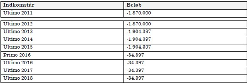 For indkomstårene 2014 - 2018 udgjorde saldoen på indskudskontoen ifølge skatteregnskaberne som følger: