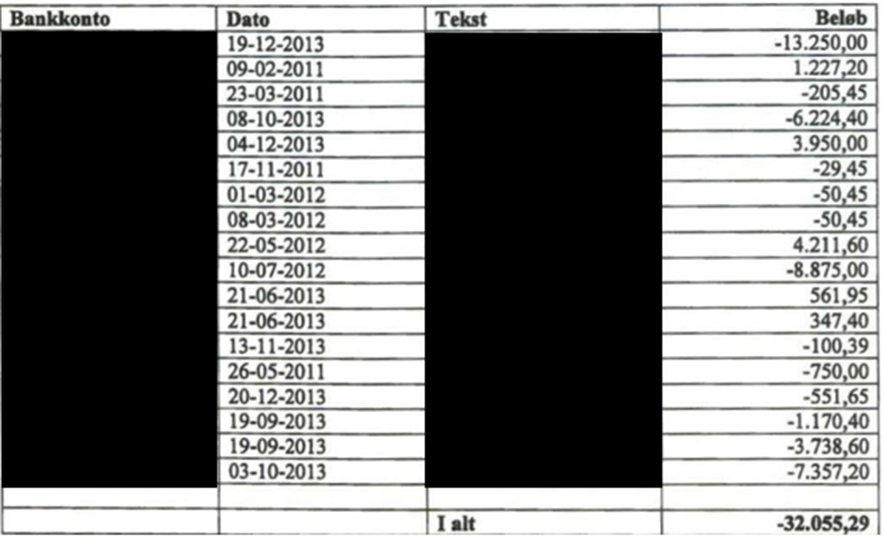 Der var i mailen vedhæftet kontoudtog vedrørende bankkonto med kontonr. X1-konto for perioden 2011-2013. Der fremgår følgende af mailen: