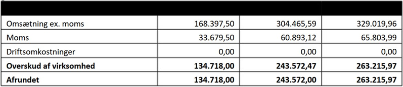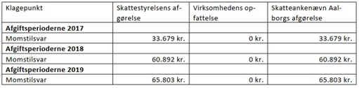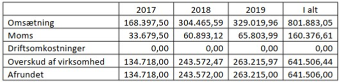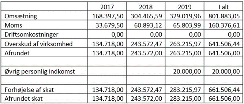 Det samlede resultat af forhøjelse af virksomheden for indkomstårene 2017, 2018 og 2019 er følgende: