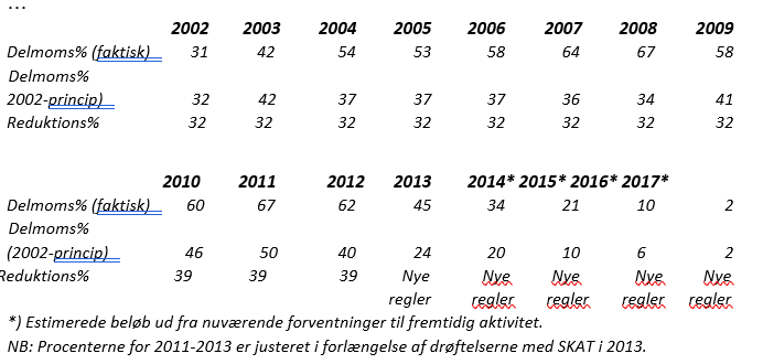 [1] Det bemærkes, at effekten af at medtage kursreguleringer er af begrænset betydning, idet dette alene medfører en ændring af de fordelingsprocenter, som fremkommer ved den af SKAT opgjorte omsætningsfordeling, med 0,22 procentpoint for 2011 og 0,3 procentpoint for 2012 (bilag K).